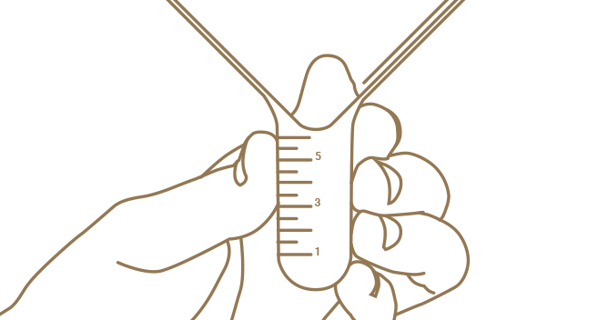 液状化した精液を、採取計量カップの計量部に移動させます。